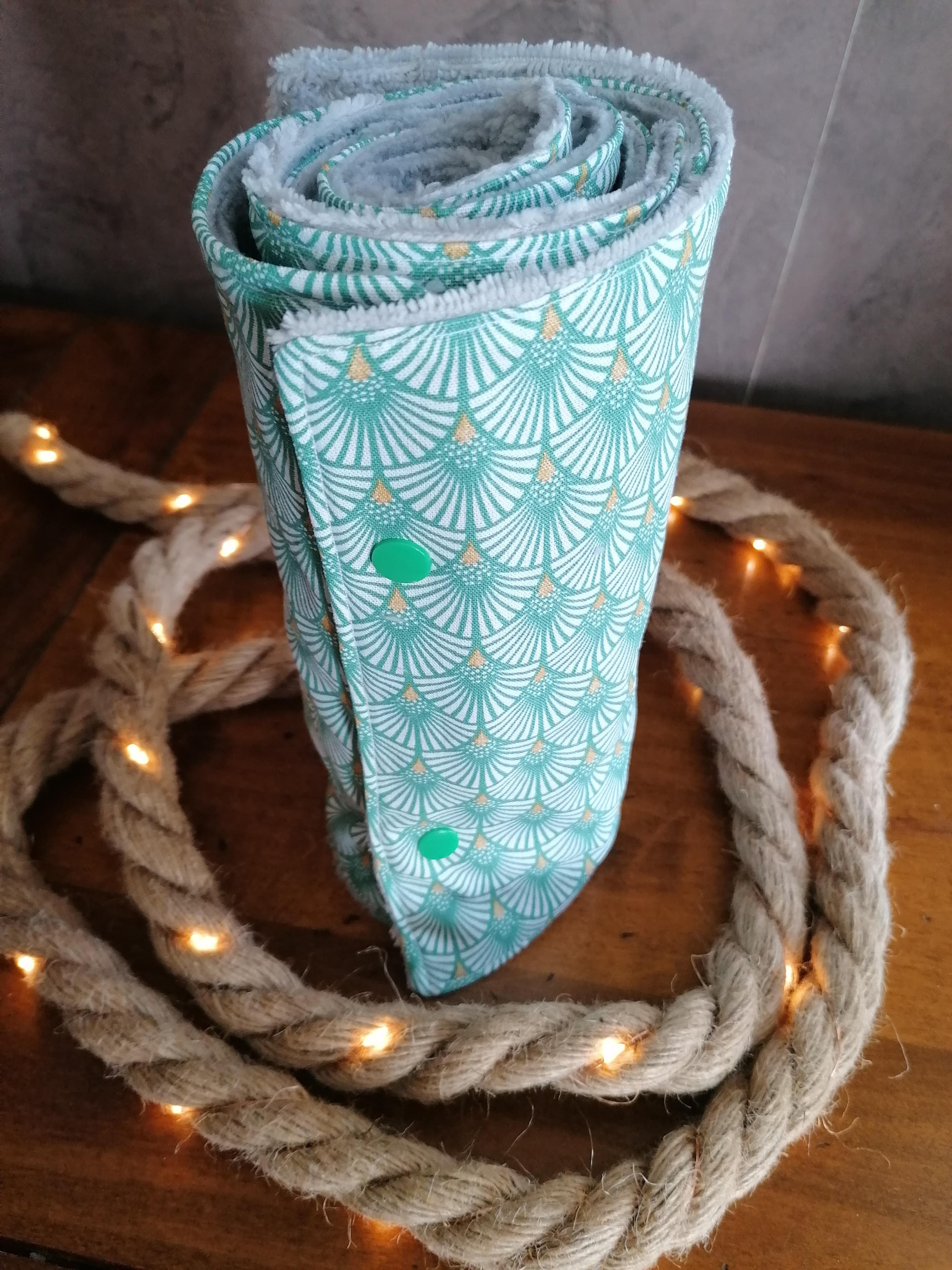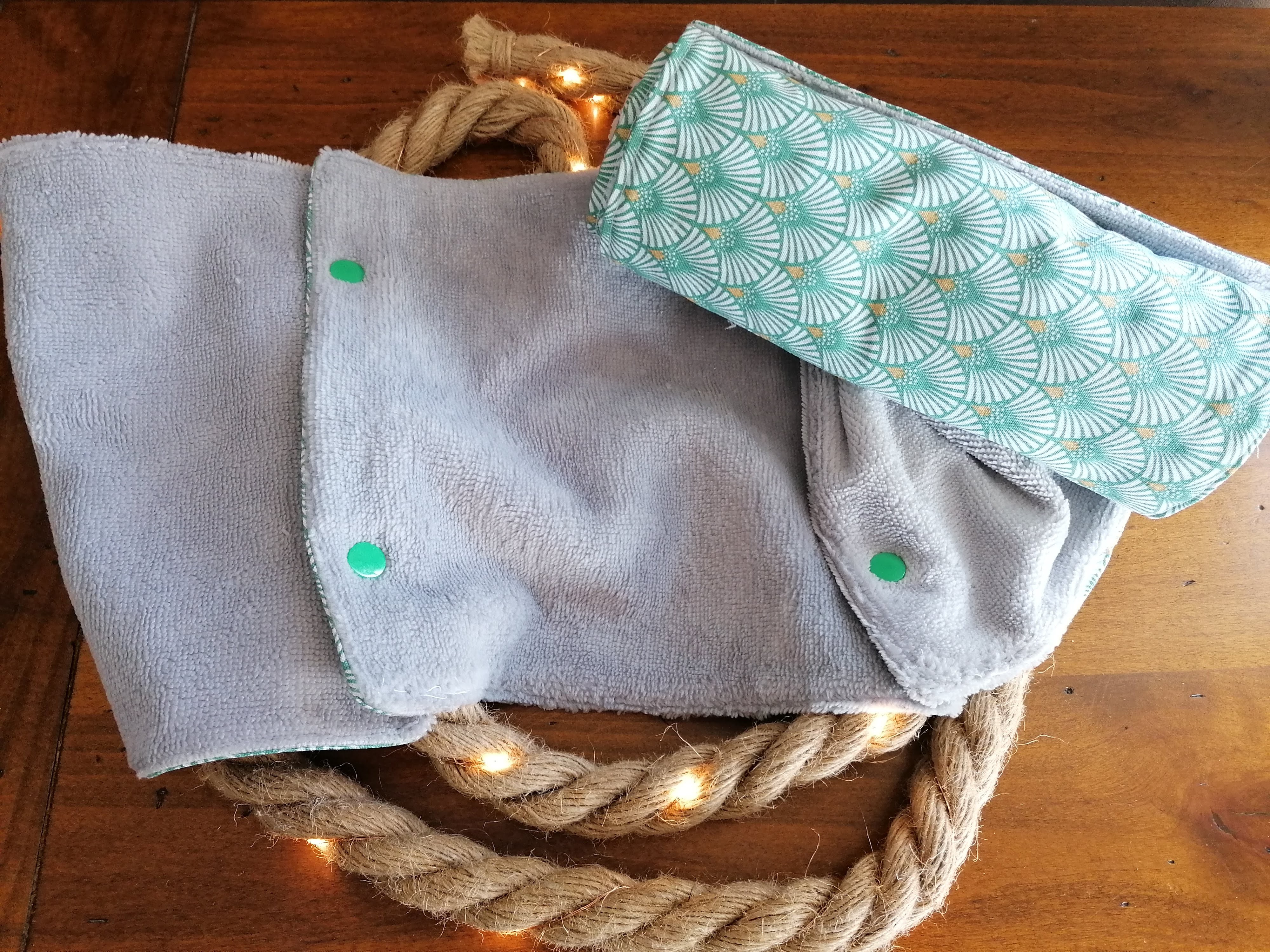 7 morceau de 20 x 20 en Tissus coton, et coton éponge en banbou, et pression.